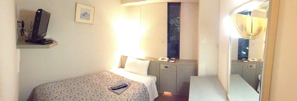 ・1210号室はかなりボロく、照明が暗い。幽霊でも出そうな雰囲気すらある。この部屋はネットが使えなかったため、後で禁煙ルームに移動した。こちらは7Fの714号。部屋が弱冠キレイになり、照明はだいぶ明るくなった(6枚目の投稿写真)