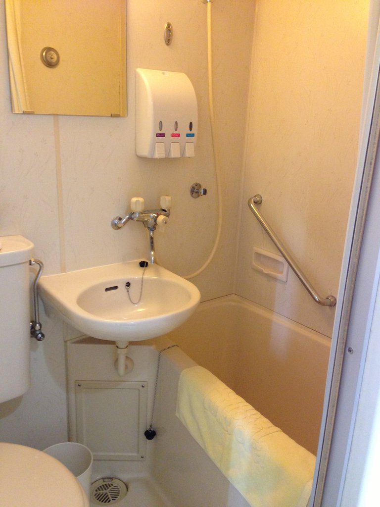 ・部屋の浴室はシャワーカーテンの丈が短く、ほぼ床に水がしたたる